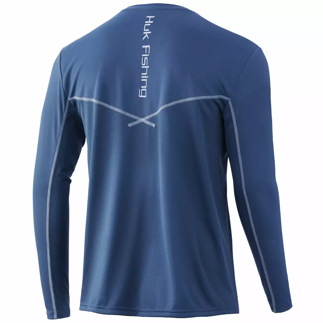 The Huk ICON X Long Sleeve is the most technically advanced performance fishing shirt designed for hardcore anglers. This breathable material spreads moisture over a larger surface area creating a rapid drying effect that cools the body after coming into contact with perspiration. The synthetic fibers allow air to pass through the shirt and contain a hydrophobic coating that transports sweat to drier areas, away from the skin.