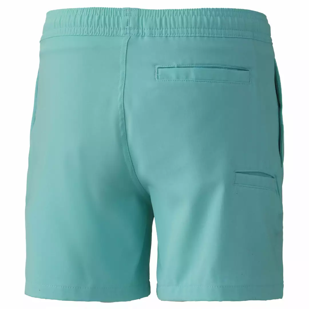 These lightweight youth board shorts feature quick drying SPF rated fabric, an adjustable draw cord and ample pockets for all adventures, in and out of the water.