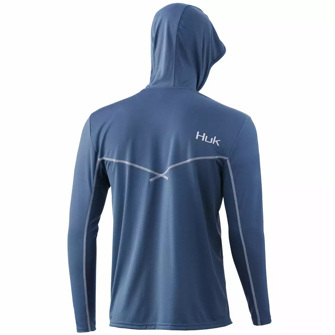 The Huk ICON X Hoodie is the most technically advanced performance fishing shirt designed for hardcore anglers. This breathable material spreads moisture over a larger surface area, creating a rapid drying effect that cools the body after coming into contact with perspiration. The synthetic fibers allow air to pass through the shirt and contain a hydrophobic coating that transports sweat to drier areas, away from the skin.