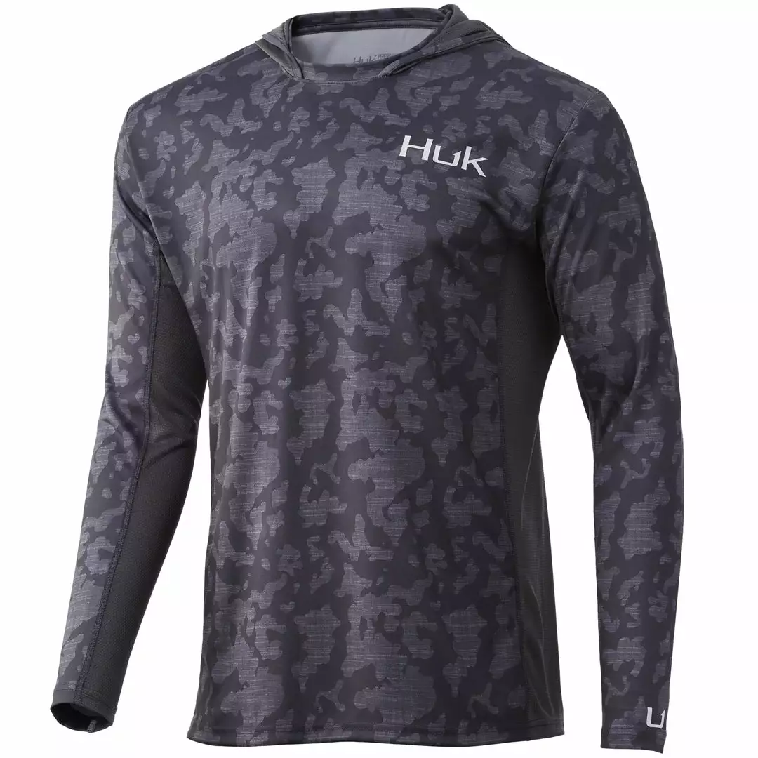 The Huk ICON X Running Lakes Hoodie is the most technically advanced performance fishing shirt designed for hardcore anglers. This breathable material spreads moisture over a larger surface area, creating a rapid drying effect that cools the body after coming into contact with perspiration. The synthetic fibers allow air to pass through the shirt and contain a hydrophobic coating that transports sweat to drier areas, away from the skin.