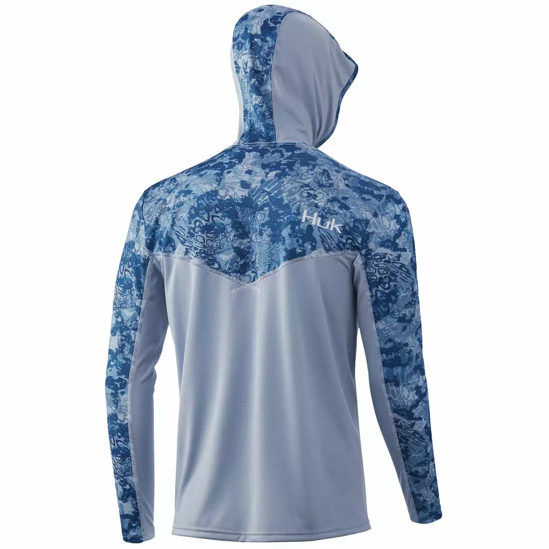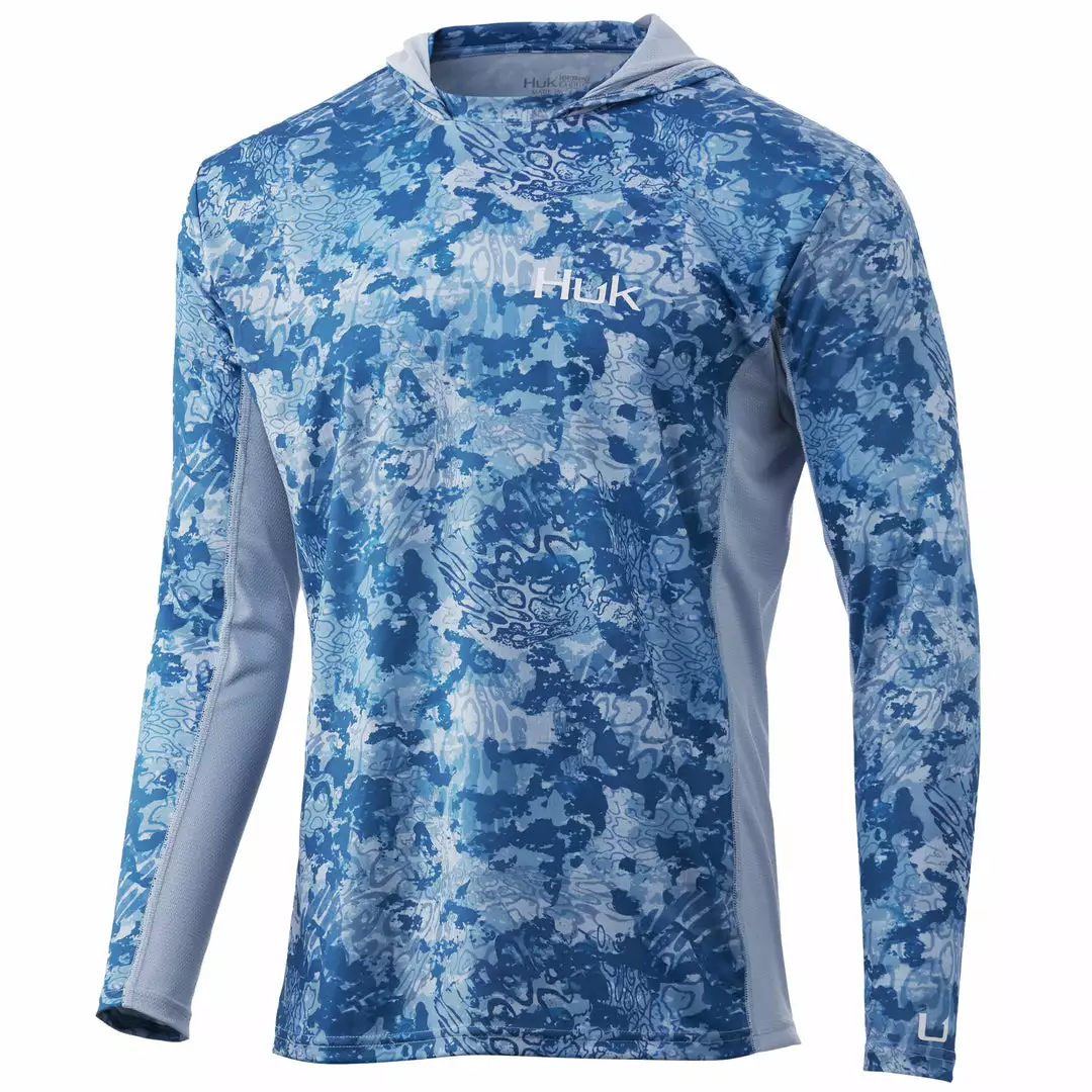 The Huk ICON X Tide Change Hoodie is the most technically advanced performance fishing shirt designed for hardcore anglers. This breathable material spreads moisture over a larger surface area, creating a rapid drying effect that cools the body after coming into contact with perspiration. The synthetic fibers allow air to pass through the shirt and contain a hydrophobic coating that transports sweat to drier areas, away from the skin.