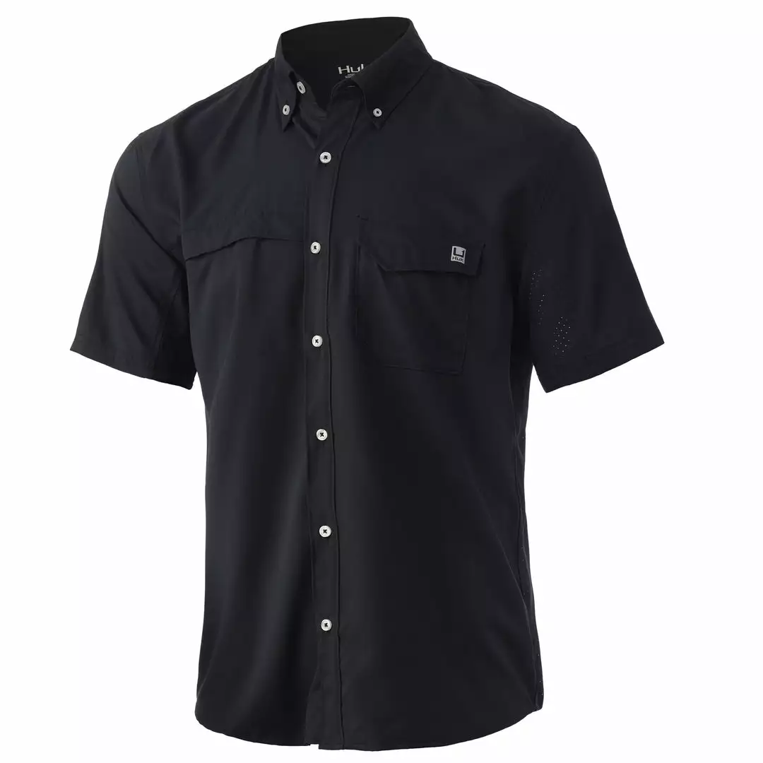The Huk Tide Point Solid Short Sleeve is a performance-packed button-down, completely reinvented. The Tide Point shirt is designed to easily transition from the boat to the boardroom. With all-day comfort for both on and off the water pursuits, the Tide Point is constructed using lightweight, breathable, quick-drying, moisture-wicking fabric with two-way stretch and built-in microfiber sunglass wipe. Featuring our laser perforated underarms and back for supreme breathability, the fit and function of the Tide Point will quickly earn your respect.
